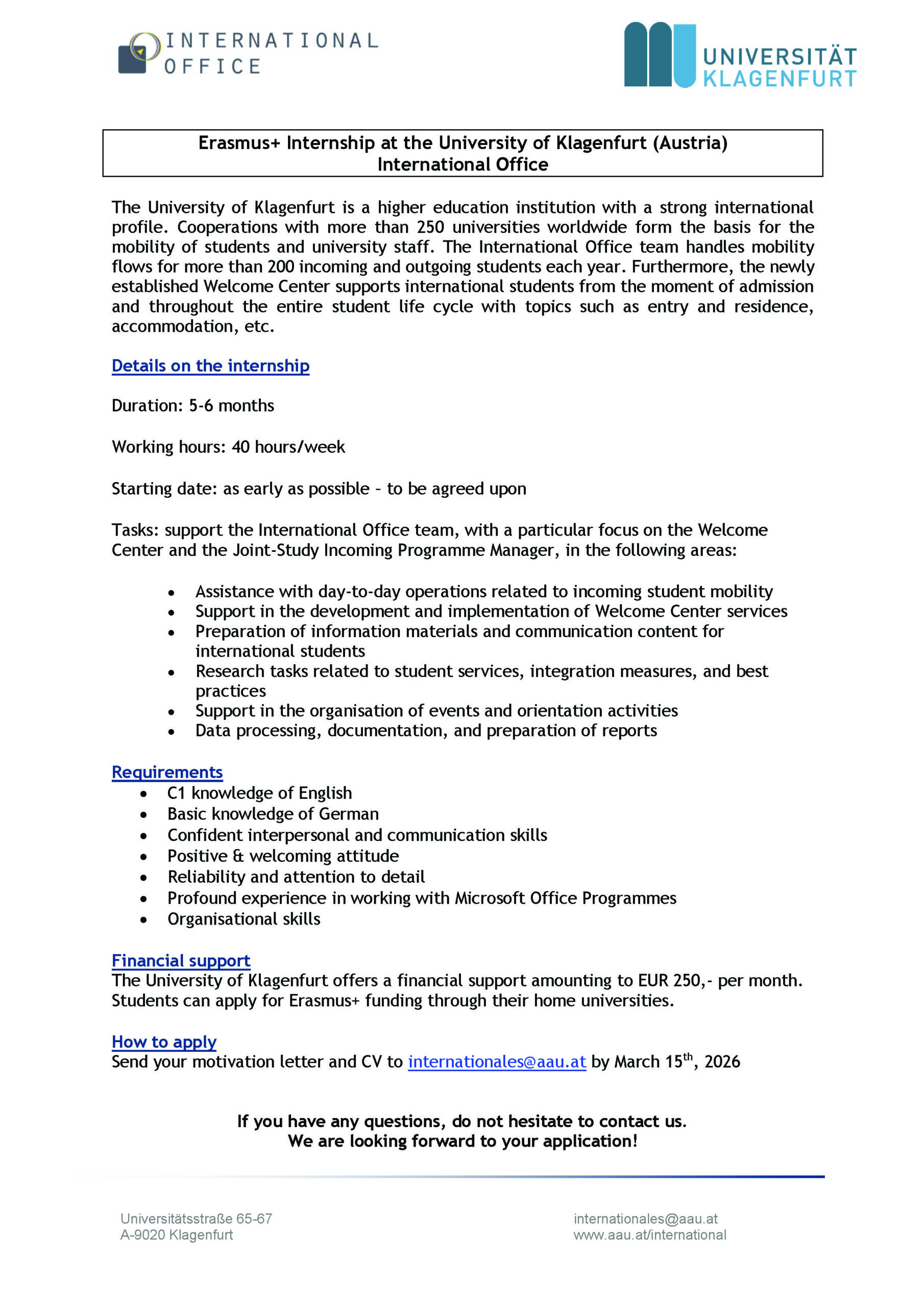 - pisarniške naloge v povezavi z EU projekti (baza kontaktov, spremljanje razpisov, mailingi, …)