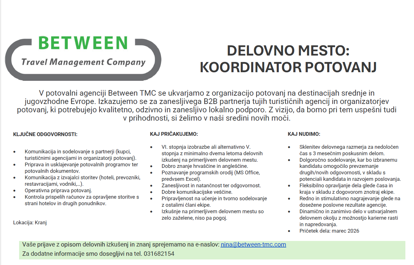 KOORDINTOR POTOVANJ / KRANJ