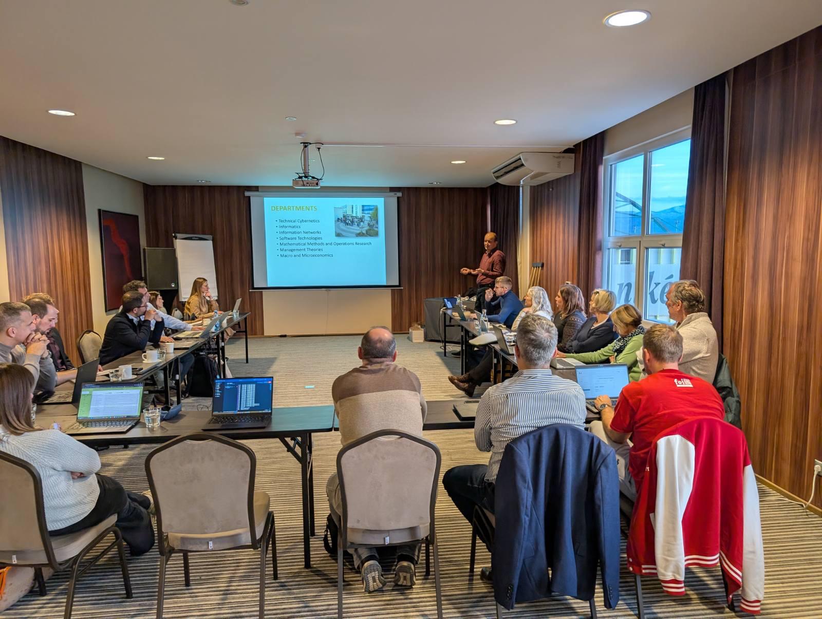 V preteklem mesecu so se pedagoški sodelavci UM FOV udeležili delavnice o oblikovanju učnih vsebin v okviru delovnega paketa 4 na Univerzi v Žilini na Slovaškem. Poleg delavnice so v Žilini potekali tudi sestanki za posamezne delovne pakete ter sestanek upravnega odbora projekta.