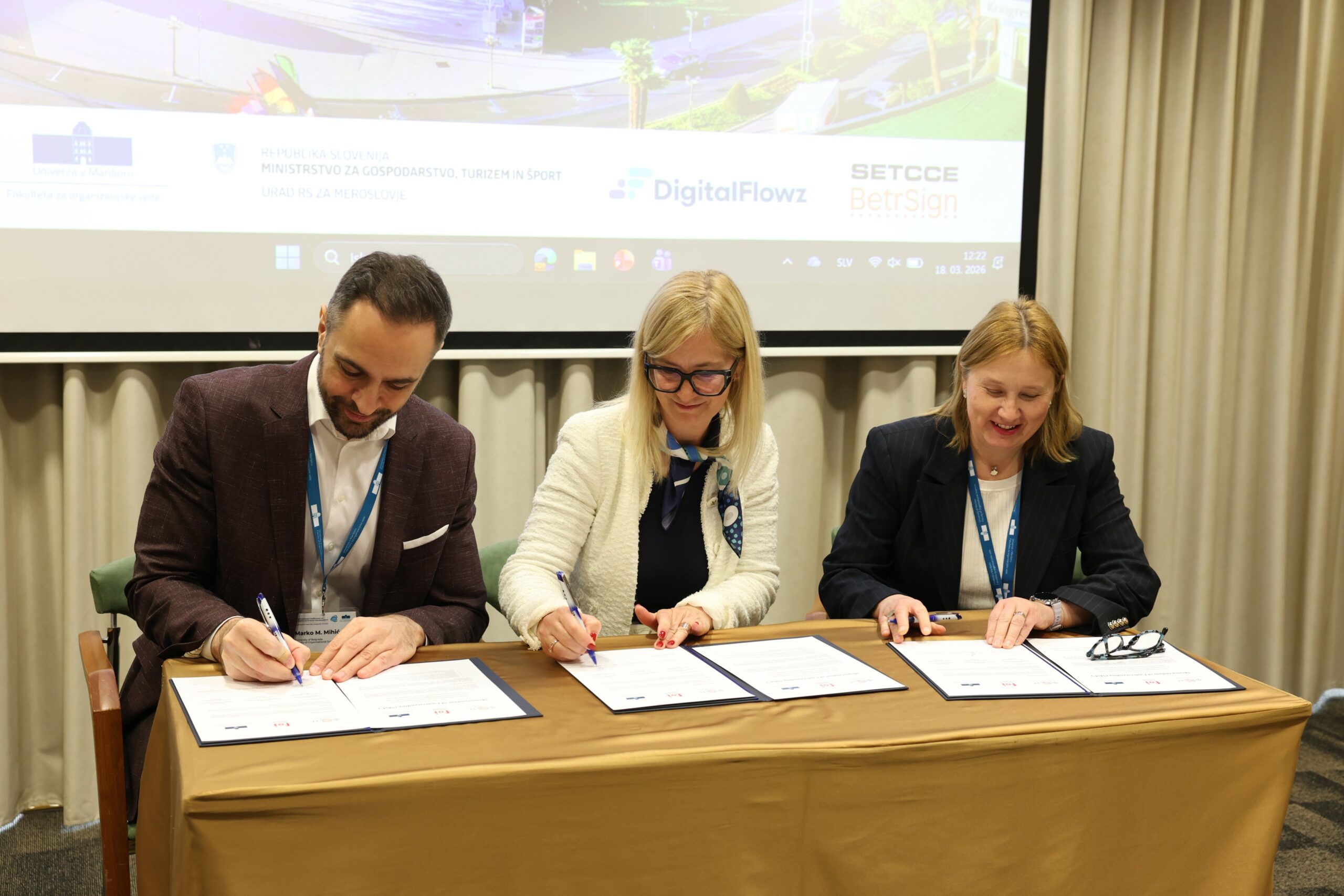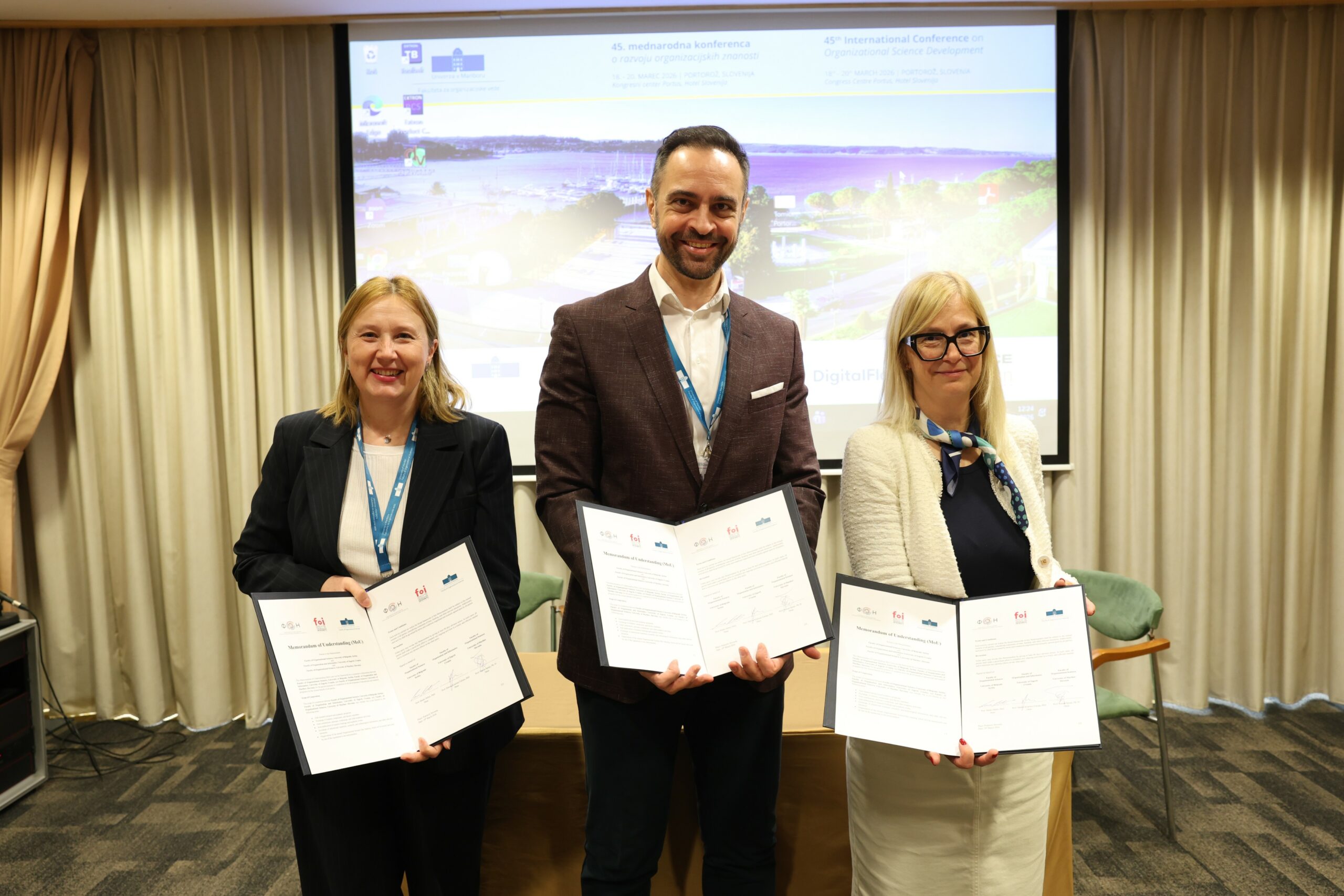 Na Konferenci o razvoju organizacijskih znanosti, ki je potekala pretekli teden v Portorožu, so v sredo, 18. marca 2026, dekani treh fakultet iz Beograda, Varaždina in Kranja, podpisali memorandum o skupnem sodelovanju, s katerim želijo okrepiti medinstitucionalno povezovanje na področju izobraževanja, raziskovanja in razvoja področij organizacijskih znanosti in informatike.