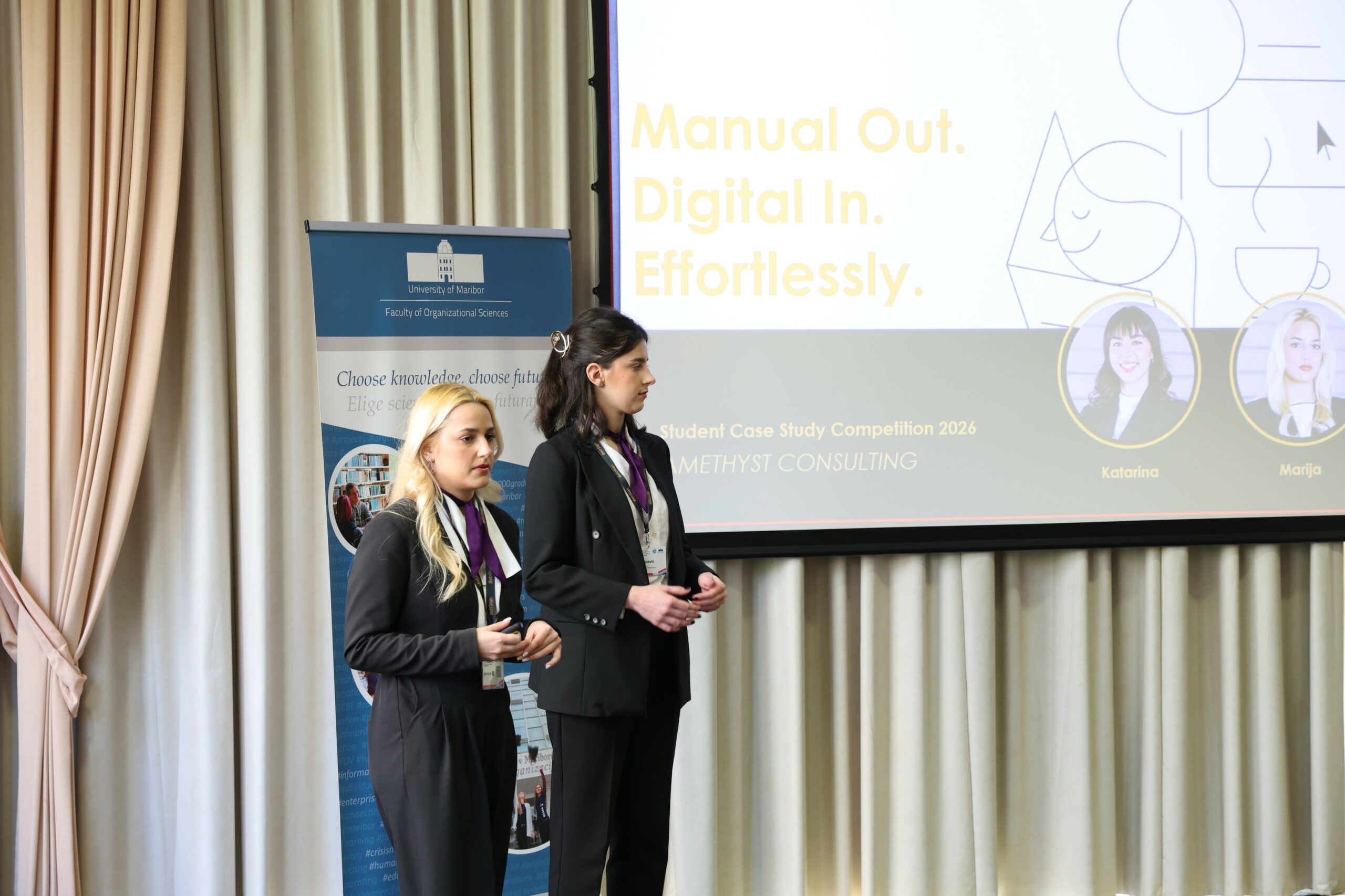 V četrtek, 19. marca 2026, so se ekipe študentov zbrale v Portorožu, kjer so predstavile odlične rešitve na zastavljen izziv. Na tekmovanju je sodelovalo pet študentskih ekip. Zmagala je ekipa Pro Bono (Corvinus University of Budapest, Faculty of Economics), drugo mesto je osvojila ekipa Amethyst Consulting (University of Belgrade, Faculty of Organizational Sciences), tretje mesto pa ekipa SPARK (University of Novi Sad, Technical Faculty »Mihajlo Pupin«).