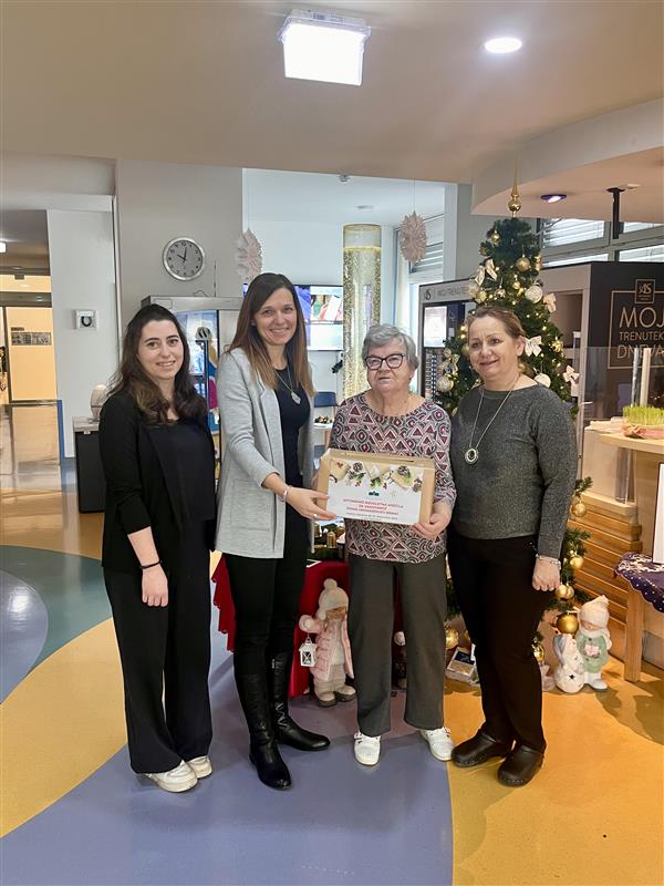 Praznična voščila, ki smo jih zaposleni, študenti in diplomanti Fakultete za organizacijske vede UM pridno zbirali v avli fakultete v predprazničnem času, smo danes odnesli v Dom upokojencev Kranj.