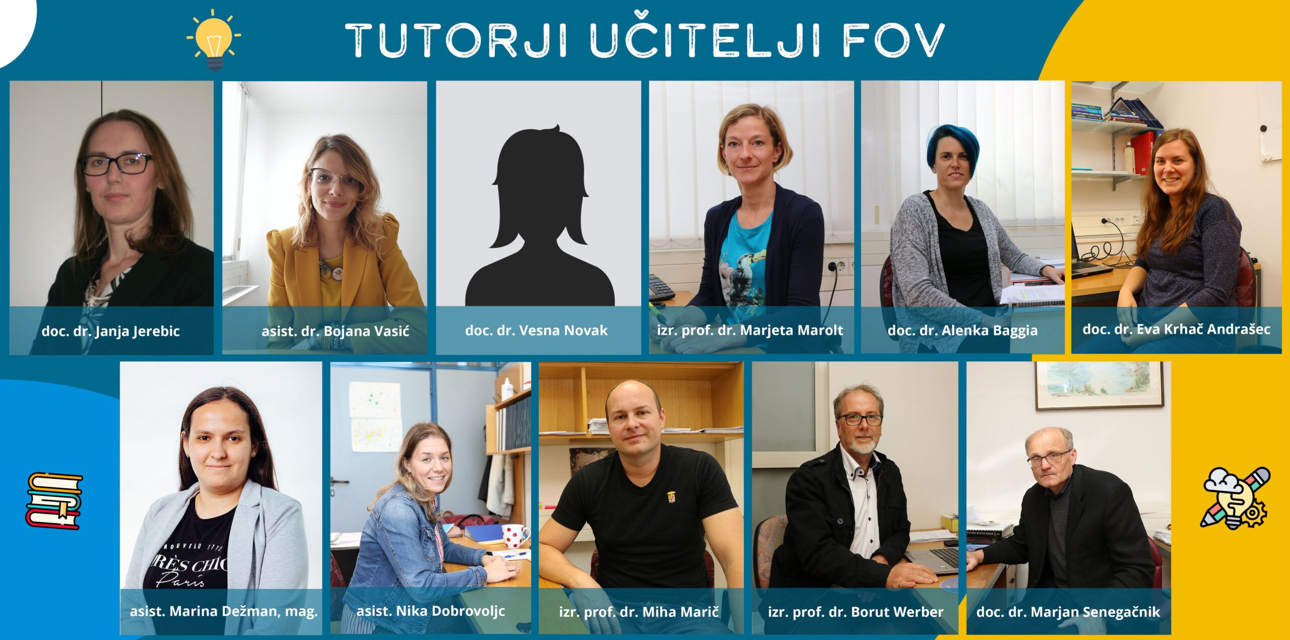 ** VT – tutorji učitelji, ki pri predmetih Računalništvo in informatika (RII), Osnove matematike v organizacijskih vedah (OMOV), Matematika v organizacijskih vedah (MOV), Osnove statistike (OS), Statistika (S), Osnove naravoslovja in tehnologije (ONT) sodelujejo z vsebinskimi tutorji študenti.